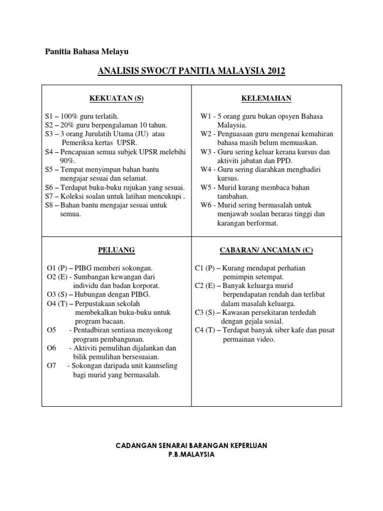 Perancangan Strategik Panitia Bahasa Melayu Pdf